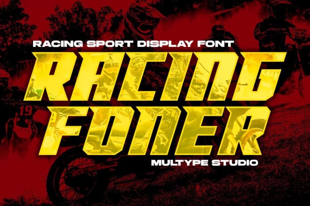 Racing Foner Font is a racing sport display font. A strong, bold and unique style instantly gives your design power and uniqueness. This font perfect font for sport or racing themed projects, such as logo, poster, games, product design and much more.