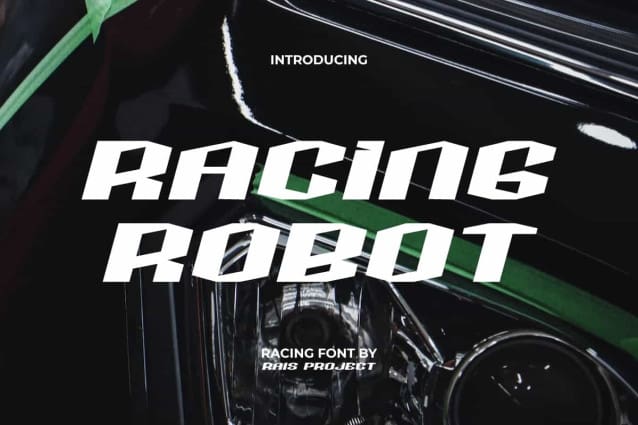 Racing Robot Font is a bold modern sporty racing display racing font by RaisProject. Even though it has a boxy and precise letter shape, this font still gives a unique impression that is still easy to read. It will be good for any designs, such as advertisement, brand image, custom design, invitation, label, marketing material, menu, poster, product packaging, quotes, signage, website page, and more!