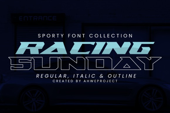 Racing Sunday Font is a modern techno display font and unique style that instantly add power and movement to your projects.