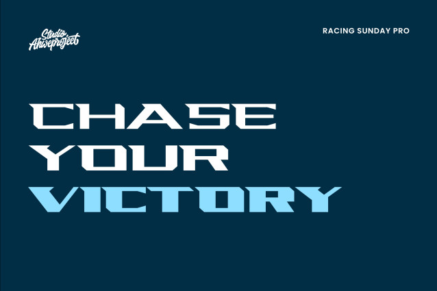 Racing Sunday Pro Font is a bold sport display font with a fast, angular style inspired by race cars and Sunday night matches. Its sharp diagonals and strong all–caps letters instantly give your design a sense of speed, power, and competition, perfect for eye-catching headlines and logos.