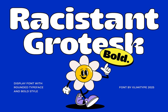 Racistant Grotesque Font is a modern display font featuring a smooth, rounded style that gives it a friendly yet professional look. Unique inktrap details on several characters add personality and make it stand out. Perfect for large, eye-catching titles or headlines that need to be bold, clear, and modern without feeling too rigid.