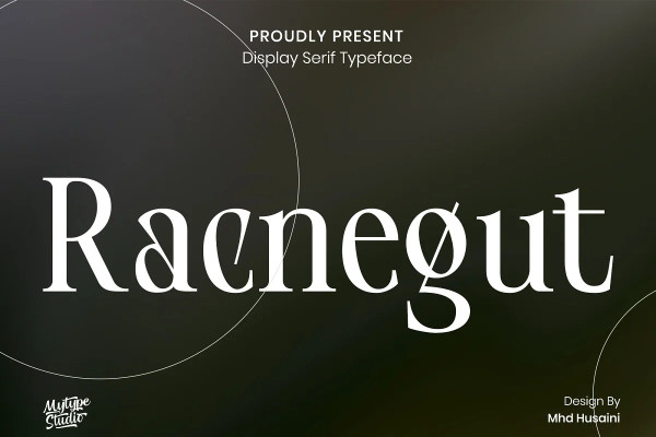 Racnegut Font is high contrast serif font features a mixed modern-classic design. Racnegut support multilingual languages, numbers, punctuation and alternative-ligatures. Create unique & amp; beautiful logotype, use it as an elegant solution for your next magazine layout, or choose Racnegut for any graphics that require a sleek look with a elegant flair.