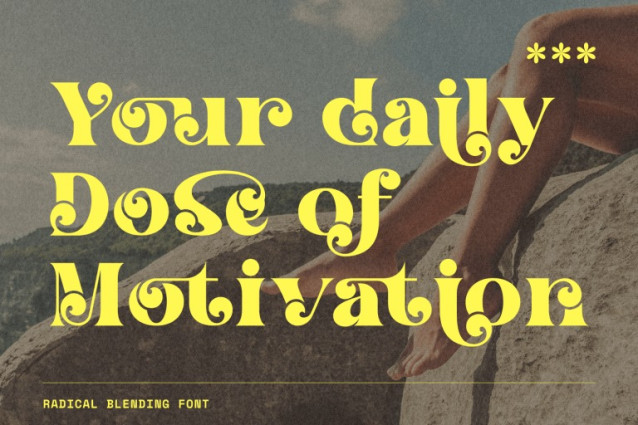 Radical Blending – Playful Retro Font, a playful retro serif display font inspired by vintage typography with a bold, cheerful, and expressive personality. This typeface features soft, rounded serif forms combined with generous curves and lively swashes, creating a friendly yet eye-catching appearance. Radical Blending stands out through its decorative terminals, bouncy letterforms, and charming ligatures that bring movement and joy into every word. The overall design feels warm, nostalgic, and optimistic, making it perfect for branding, packaging, posters, headlines, children’s products, lifestyle designs, social media graphics, and creative editorial layouts.