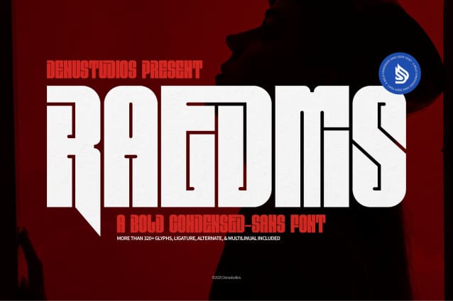 Raedmis Font | Bold Condensed Sans Serif, from Denustudios, suitable for any projects such as: logos, branding projects, homeware designs, product packaging, mugs, quotes, posters, shopping bags, t-shirts, book covers, name card, invitation cards, greeting cards, label, photography, watermark, special events, and all your other lovely projects that need a Bold Condensed Sans Serif taste.