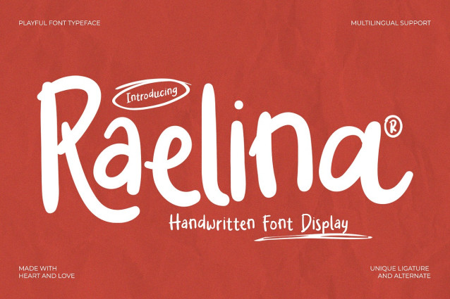 Raelina Font – Handwritten Font Display. Charming handwritten font display, perfect for adding a personal touch to designs, invitations, and branding. Unique, versatile, and stylish.