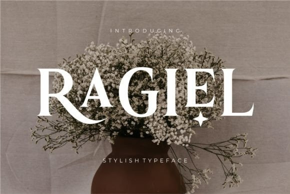 Ragiel Font – Ligature Serif Font, inspired by the famous minimalist logo perfect for the purposes of designing templates, brochures, videos, advertising branding, logos, invitation, layout design, elegant crafting, beauty design and more.