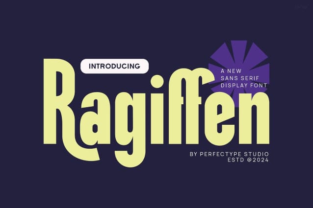 Ragiffen Font, this typeface encapsulates a rhythm that is symmetrical and balanced due to a unique mix of different sources of inspiration. Proportions are precisely adjusted with subtle contours and subtle contrasts. These shapes give the font an attractive look without compromising on elegance and minimalism, ensuring that any glyph will work well in any graphic design purpose such as brochures, videos, advertising branding, logos, magazines, layout designs, posters, post templates, games and others