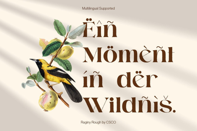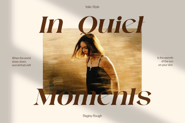 Ideal for Versatile and Expressive Applications Raginy Rough is especially suited for branding, editorial layouts, fashion lookbooks, and packaging that seeks to stand out with a crafted, luxurious touch. Its blend of sophistication and texture makes it a strong choice for projects that want to appear premium, stylish, and distinctively artistic.