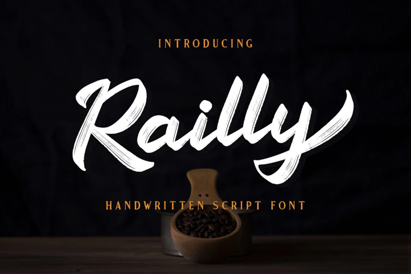 Railly – Handwritten Script Font also Suitable for Logo, greeting cards, quotes, posters, branding, name card, stationary, design title, blog header, art quote, typography, art, modern envelope lettering or book design, happening style like handdrawn design or watercolor design theme, craft design, any DIY project, book title, or any purpose to make your art/design project look pretty and trendy.