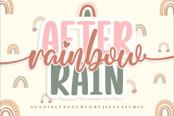 This font is made for personal use. Get the full version of the fonts if you want to use it for commercial purposes by purchasing the licenses here: https://www.creativefabrica.com/product/rainbow-after-rain