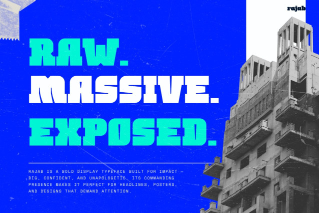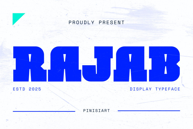 RAJAB FONT is a bold, modern, and futuristic typeface that captures attention instantly. It features raw geometric edges, massive proportions, and striking aesthetics. Moreover, this font doesn’t just fill space—it dominates it. Each character looks powerful, stylish, and versatile. As a result, it works perfectly for digital branding, social media designs, and strong headlines. RAJAB combines sharp display details with smooth flow, and therefore creates balance between experimental design and readability. In addition, whether you use it in minimal layouts or edgy futuristic themes, your message will always stand out.