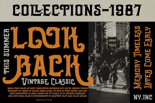 Ralloca Display Font is an all-caps font with an elegant touch with a classic feel inspired by the typography from the 19th century, old fancy lettering, vintage illustration, and victorian calligraphy.