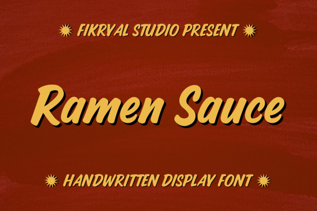 This font is used only for demos (Demo license). If you want to use this font for commercial use please contact: https://creativemarket.com/FikryalStudio/291839129-Ramen-Sauce-%E2%80%93-Handwritten-Font?u=fontlot123