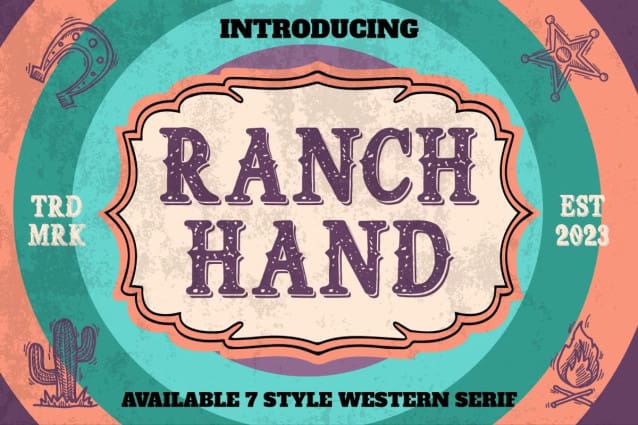 Ranch Hand Font is a display western font that captures the essence of the wild west with a touch of quirkiness and fun. This font is perfect for creating festive designs for Christmas events, as it offers seven different styles that can be used individually or combined to create stunning effects. Whether you want to add some retro flair, vintage charm, or rodeo vibe to your projects, Ranch Hand has you covered.