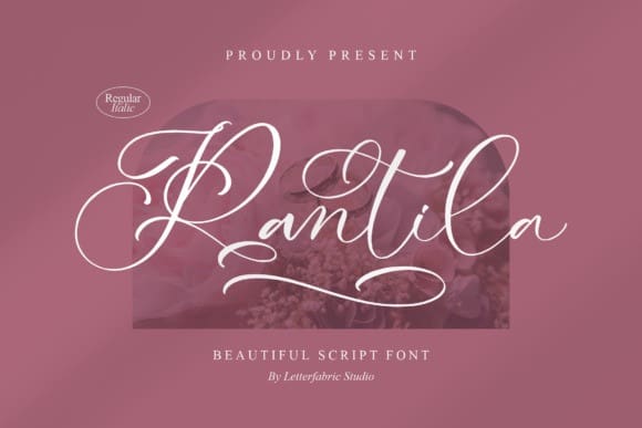 Rantila Font – Beautiful Script Font suitable for any projects such as logos, branding projects, homeware designs, product packaging, mugs, quotes, posters, shopping bags, t-shirts, book covers, name cards, invitation cards, greeting cards, labels, photography, watermark, special events, and all your other lovely projects that need a beautiful script taste.