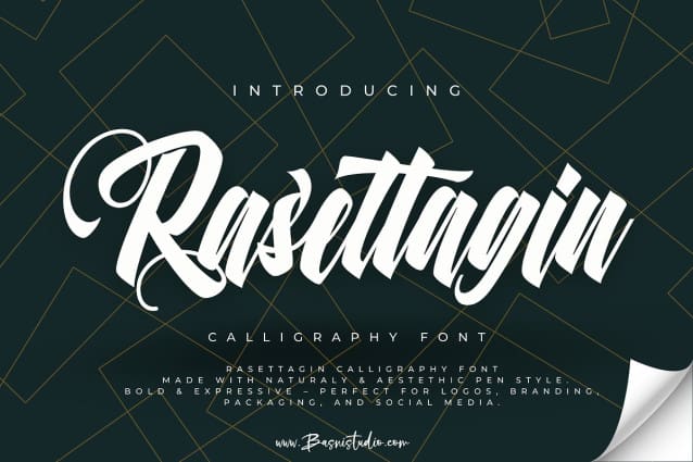 Rasettagin Font, a Handcrafted Brush Calligraphy font designed for brands that demand attention. Transform your brand’s identity with the perfect blend of artistry and attitude.