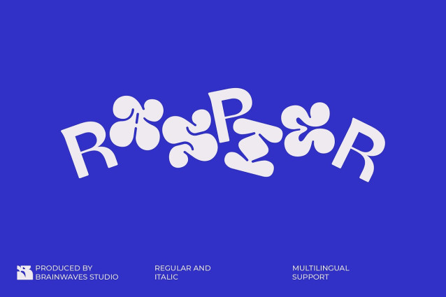 Raspier Font, a wildly unique mixed display font! This isn’t your average typeface—it’s a groovy, psychedelic journey with abstract, liquid-like letterforms that instantly inject fun and retro vibes into your designs.
