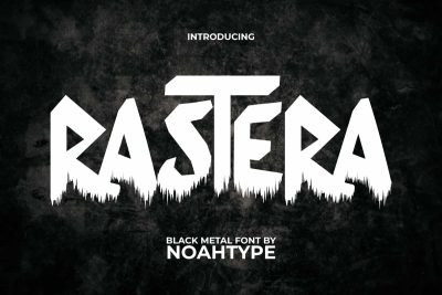 Rastera Display Font is a punk black metal font with a creepy frost elements by NoahType. This font has a character with a bold and horror charm at the same time because there are drops under the letters. It will be perfect for any designs, such as custom design, brand image, cover, invitation, label, marketing material, menu, poster, printing, product packaging, quotes, signage, website, and many more!