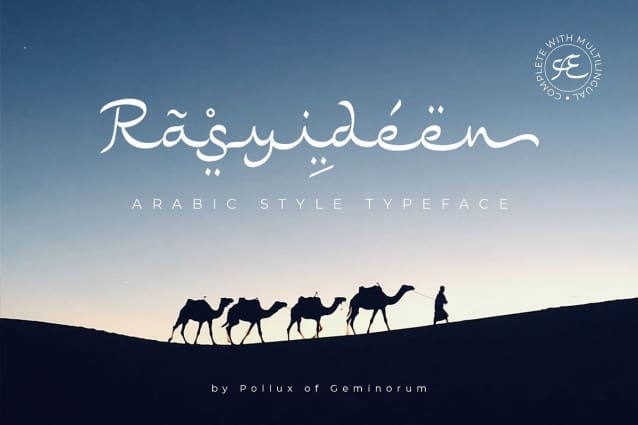 Rasyideen Arabic Font is made for personal use. Get the full version of the fonts if you want to use it for commercial purposes by purchasing the licenses here: https://creativemarket.com/polluxofgeminorumstd/7045429-Rasyideen?u=fontlot123