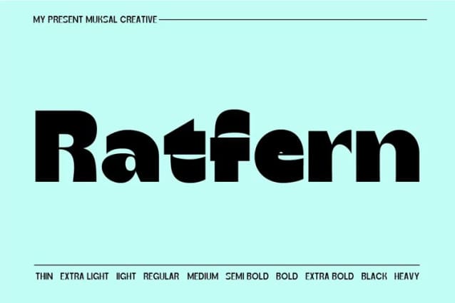 Ratfern Font is a unique and modern family of Sans serif fonts. Simply Conception has 10 families Regular font, starting from the small thin to the largest Heavy. This typeface is versatile and can be used successfully in magazines, posters, branding, websites.