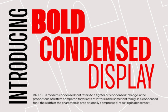 Raurus Font Family – Bold Condensed Display Font RAURUS is a strong and modern condensed display typeface designed to make a bold statement. With its powerful structure and sleek condensed style, this font is perfect for projects that demand attention and confidence.