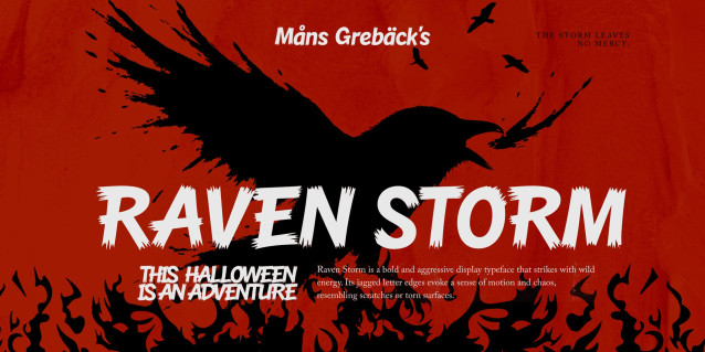 Designed and created by Mans Greback, one of the leading type designers in high-quality expressive fonts, Raven Storm showcases his signature blend of energy and precision.