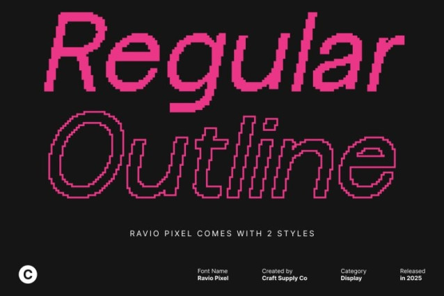 Ravio Pixel Font This is a commercially sharp sans serif font designed for clarity, precision, and professional appeal. Its balanced proportions and clean letterforms create a polished, versatile typeface suitable for a wide range of applications. Ideal for advertising, packaging, and corporate branding, this font ensures your designs convey professionalism and contemporary style.