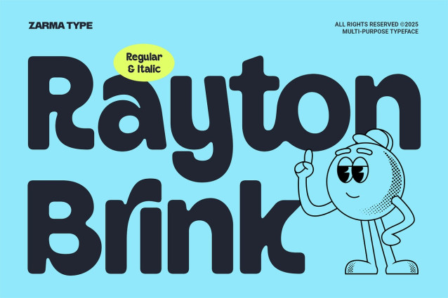 Rayton Brink Font is a friendly rounded font designed to infuse your brand identity with joy, clarity, and approachability. With its smooth, thick curves and playful presence, this typeface brings a sense of warmth and creativity to every visual. Whether you’re crafting a bold homepage headline, a product label, or a vibrant display, Rayton Brink delivers consistency without sacrificing character. Each letter feels intentional, creating a strong, personable voice that feels both modern and nostalgic.