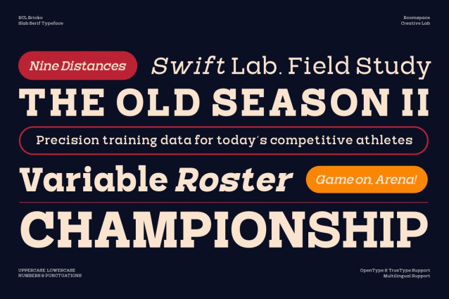 RCL Bricko Font is a modern slab serif font family with a strong character, solid structure, and high readability. Inspired by editorial typography and contemporary branding, Bricko feels bold yet clean ideal for designs that aim to appear confident, professional, and trustworthy. Meet Bricko, a modern slab serif font family designed to bring strength, clarity, and confidence into your designs. With solid letterforms and clean proportions, Bricko works beautifully for branding projects, editorial layouts, and bold headlines. Its versatility allows it to adapt effortlessly from corporate identities to modern digital layouts, making Bricko a dependable choice for contemporary creatives.