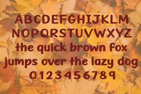 Ready For Fall Font is a bold handwritten font that brings the cozy charm of autumn to your designs. With its thick strokes and natural, hand-drawn style, this font adds warmth and personality to any project. Perfect for seasonal invitations, greeting cards, social media posts, and so much more!