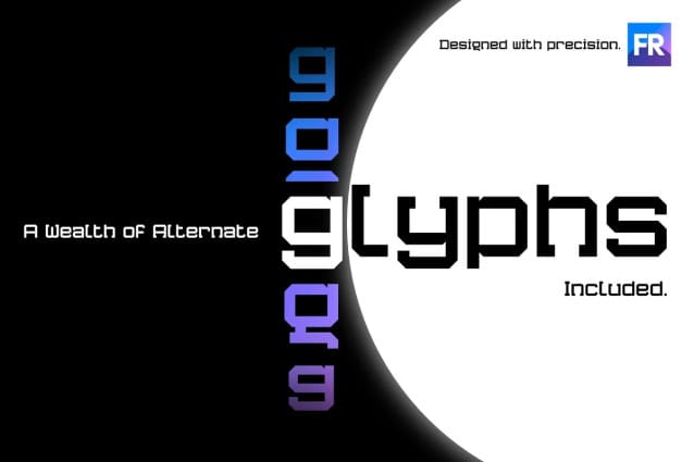Features: • A unique fusion of Modern & Slab Serif styles. • Designed with mathematical precision. • The characters share the exact same dimensions (where possible). • Monospaced (with even spacing between characters). • Comes with a generous number of alternate glyphs & accented characters. • Available in both Regular & Extended (wide) styles. • Highly versatile