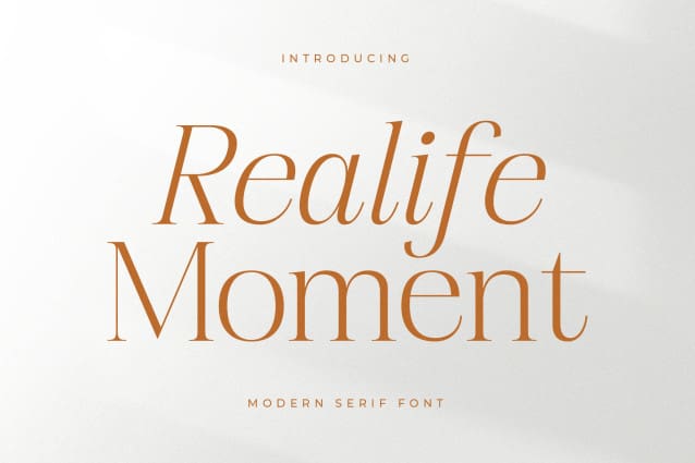 Realife Moment Font – Modern Serif Font , from Letterena, is a Luxury Serif font, suitable for any projects such as: logos, branding projects, homeware designs, product packaging, mugs, quotes, posters, shopping bags, t-shirts, book covers, name card, invitation cards, greeting cards, label, photography, watermark, special events, and all your other luxury and beautiful projects that need a Luxury serif taste.