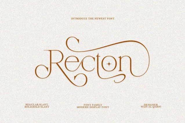 A trendy, classy & modern style serif font for your fancy projects. Elegant, fashion and classic style in the Recton font will be great for any branding project. Many alternatives and binders will help you create a unique and original logo or website header design.