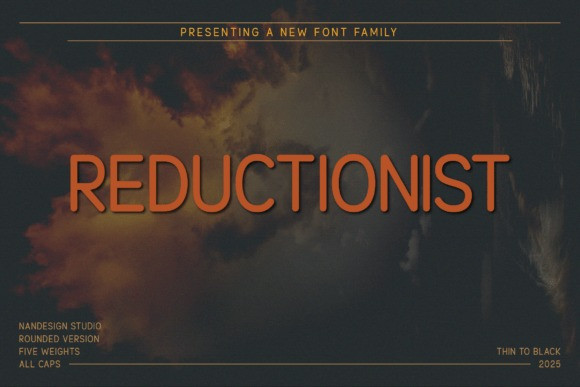 Reductionist Rounded Font is a modern all-caps sans serif font family designed to bring clarity, warmth, and bold personality to your creative projects. With its soft-rounded edges and sleek, geometric construction, this font is both highly legible and aesthetically balanced across five versatile weights: Thin, Light, Regular, Bold, and Black.