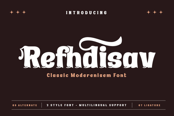 With Refhdisav Font, you can create works that depict the luxury and timelessness of classic modernism. Show an elegant, professional, and classic style in every touch of your design. Don’t miss the chance to own this eye-catching classic serif font. Rephdisav will be a bridge to satisfaction and beauty in your design projects.
