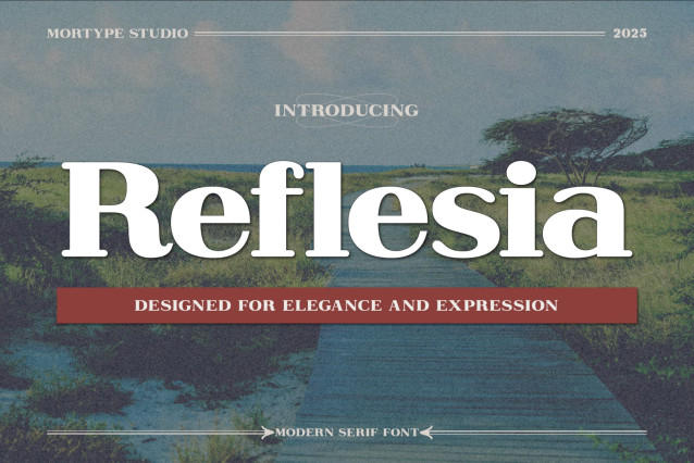 Reflesia Font is a classy serif font that brings elegance to your text. With its sleek lines and sophisticated curves, it adds a touch of refinement to any project. Perfect for fashion magazines, stylish invitations, or upscale branding, it exudes confidence and sophistication. Whether you’re aiming for a timeless look or a modern edge, this font is sure to elevate your design with its understated elegance.
