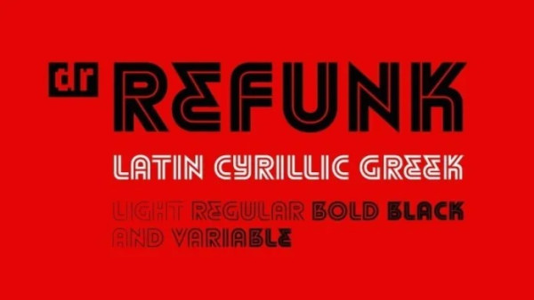 Refunk Font by Dmitry Rastvortsev is a stripped geometric font in the traditions of modernism. Its lines blended with a stronger letterform, creating a visually more dynamic typeface.