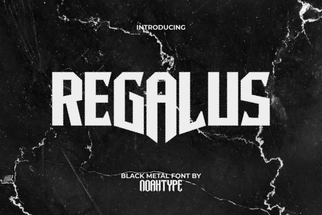 Regalus Font is a bold and sharp black metal font, created by NoahType. Each side of each letter has a rough texture, leaving a slight creepy impression. It will be perfect for any designs, such as brand image, custom design, invitation, label, marketing material, menu, poster, printing, product packaging, quotes, signage, website, and many more!