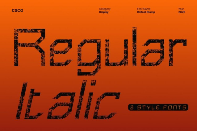 What truly sets apart is its stamped texture adding depth, creative irregularity, and a handcrafted feel to its otherwise clean geometric design. This combination of precision and texture results in a font that feels both modern and artistic. The stamp effect softens the techno rigidity just enough to create visual interest, giving each character a unique, expressive personality that stands out instantly in any layout.