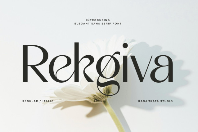 Rekgiva Font is an elegant serif font crafted to infuse sophistication and style into your creative work. Its flowing curves and crisp serifs achieve a seamless blend of timeless charm and contemporary flair. This makes it an ideal choice for branding, editorial designs, invitations, and packaging that call for a polished, refined aesthetic.