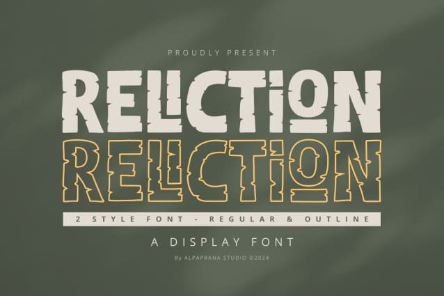 Reliction Display Font is display font with elegant and modern feels. It will be perfectly used for Branding, Logo Design, Lettering, Logotype, Clothing, Poster, magazine, packaging, posters, shopping bags, t-shirts, book covers, photography, special events and other design project.