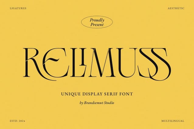 Relimuss Font – Unique Display Serif Font. Relimuss is a modern and classy typeface, best used as a display for headings, logos, branding, magazines, product packaging and invitations. Relimuss come with clean lines and smooth curves give any project an extra touch of class.