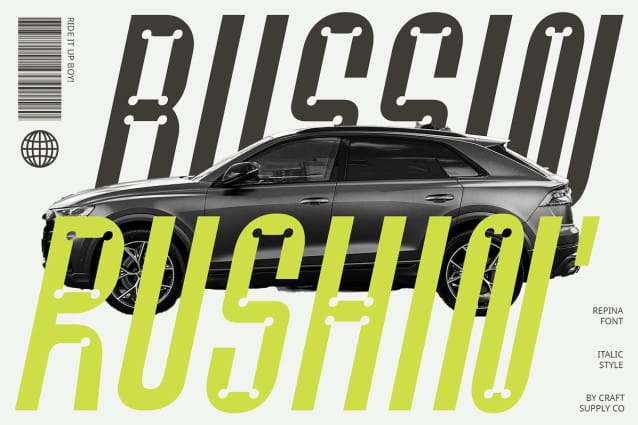 Despite its condensed form, Repina offers versatility across different design projects. Its clean lines and balanced proportions make it suitable for editorial layouts, branding materials, and digital interfaces, where a modern and sleek aesthetic is desired.