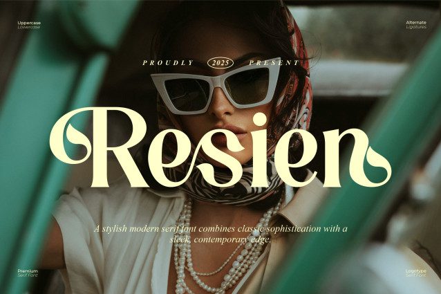 Resien Serif is a modern and classy font type for all branding and logo designs. This modern and classy Serif font has a beautiful character. This font is suitable for invitation card designs, cool logos, movie titles, movie names, business cards, book titles, brand names, and various other designs. Resien Serif is a smooth serif font that exudes sophistication and the moment. Its stylish ligatures make this font a perfect partner for any project.