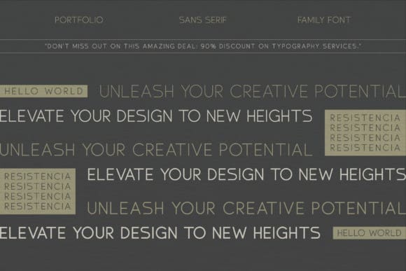 Resistencia Font, the epitome of elegant minimalism. This exclusive font family boasts of five unique weights, skillfully bridging the gap between contemporary style and opulent luxury. Every detail in this sans serif selection is meticulously refined, ensuring it elevates your projects, be it a modern magazine, distinctive logo, or dynamic film poster. Experience a harmonious blend of sophistication and simplicity with the Resistencia Font, lending your designs an enduring allure. Embrace the transformative capacity of this font family today.