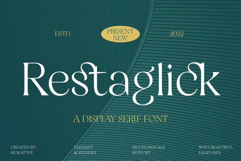 Link to purchase full version and commercial license: https://creativemarket.com/mokatypestd/7361871-Restaglick-Elegant-Ligatures-Serif?u=fontlot123