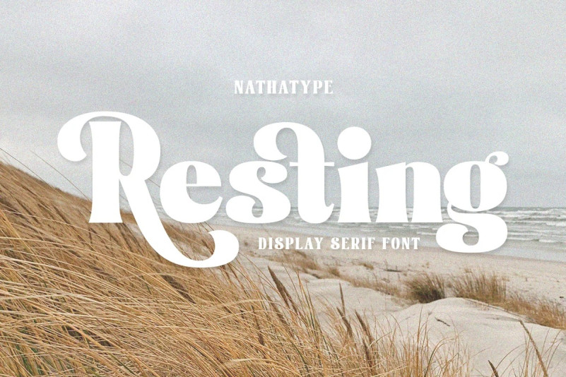 Resting Serif Font is a perfect display serif font for any of your design projects. Serif font is a font type with sticky small lines on the letters’ edges expressing formal, classic nuances and more aesthetic, creative touches due to the display font combinations. This display font has thick, high contrast lines perfect for catching attention and creating firm impressions. In addition, use this font for big text sizes for a legibility reason and make use of the other interesting features to beautify your designs.