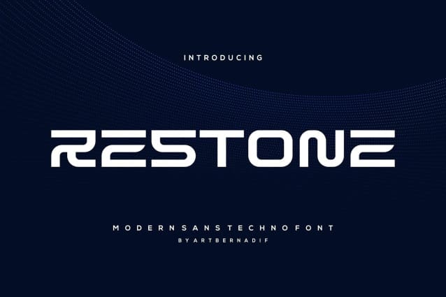 NOTE : This Demo and Personal Use only, commercial license and full version of this font can be download here: https://elements.envato.com/fr/restone-modern-sans-techno-font-U2D9Y6M