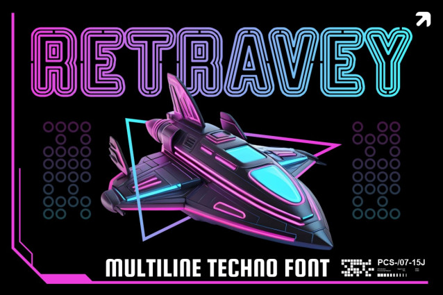 This font is ideal for projects that demand bold identity and futuristic flair. Whether you’re designing a sci-fi movie poster, a music festival headline, or a high-tech branding campaign, Retravey energizes your typography with clarity and style. It shines best in large sizes and layered compositions—great for logos, packaging, event titles, cover designs, and interactive media. Its unique techno-multiline construction guarantees maximum impact in both static and motion design contexts.