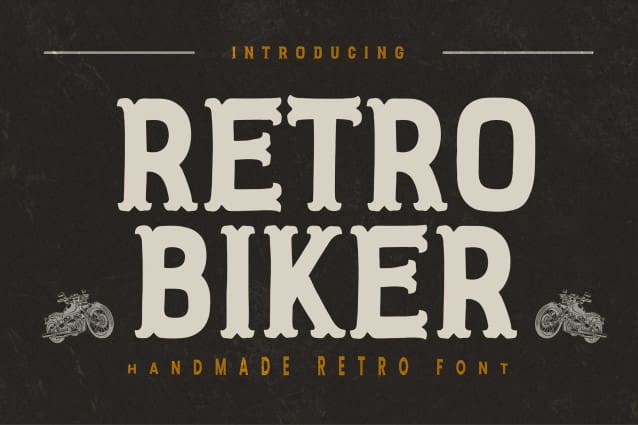 Retro Biker Font – Handmade Retro Font, modern style and retro style. The best for labels, poster, project designs look ,authentic and cool . It’s perfect for labels, quotes, posters, DIY projects, branding, packaging, greeting cards, websites, photos, photography overlays, signs, scrapbooking, tags and so much more! That is why Retro Biker has a textured, and unique characteristic more natural look. You can activate Ligatures OpenType panel.